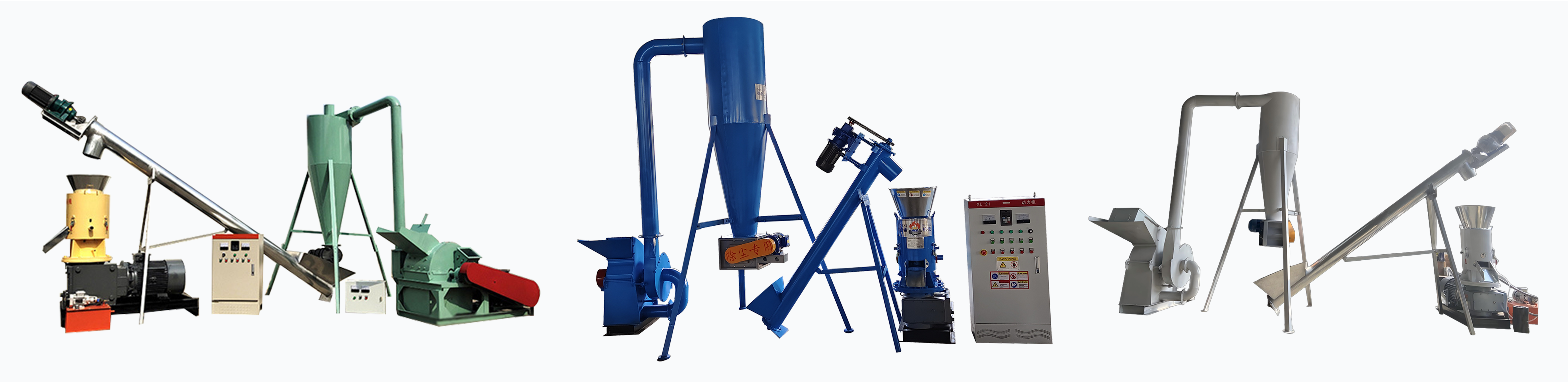 This production line integrates a crusher, cyclone separator, screw conveyor, and flat- die pellet mill, enabling the completeprocessing of wood and other biomass materials into finished pellets. Designed for high output within a compact footprint, it offersan efficient and space- saving solution for farms, workshops, and small-scale industrial applications.