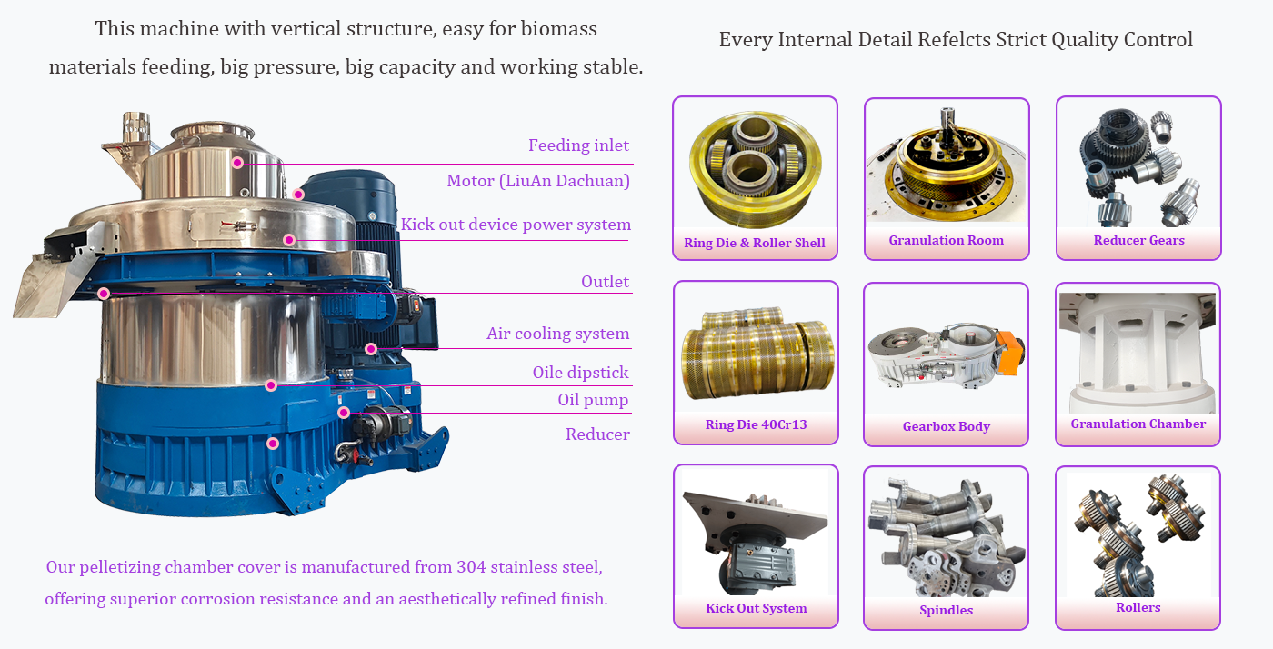 The wood pellet machine plays a crucial role in the entire production line, as it determines both the overall output capacity and the final pellet size.