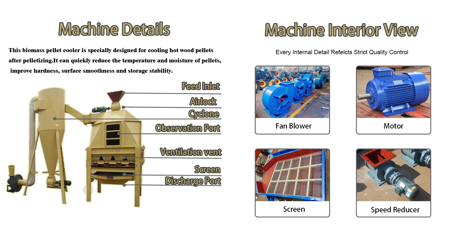 Automatic Biomass Pellet Cooling System counterflow pellet cooler 1-20/T High Efficiency Biomass Pellet Cooler