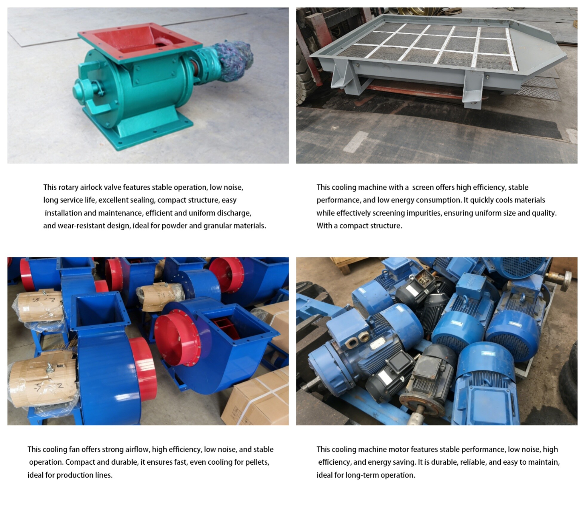 DEXI pellet cooler is a core equipment in biomass pellet and feed pellet production, used to rapidly cool and dry newly formed high-temperature pellets. It uses airflow or vibrating screens to evenly dissipate heat, effectively reducing pellet temperature, improving hardness and stability, and preventing deformation or caking. Featuring a compact structure, stable operation, and low energy consumption, it is widely used in biomass energy and feed processing industries, serving as a critical link to ensure finished product quality.